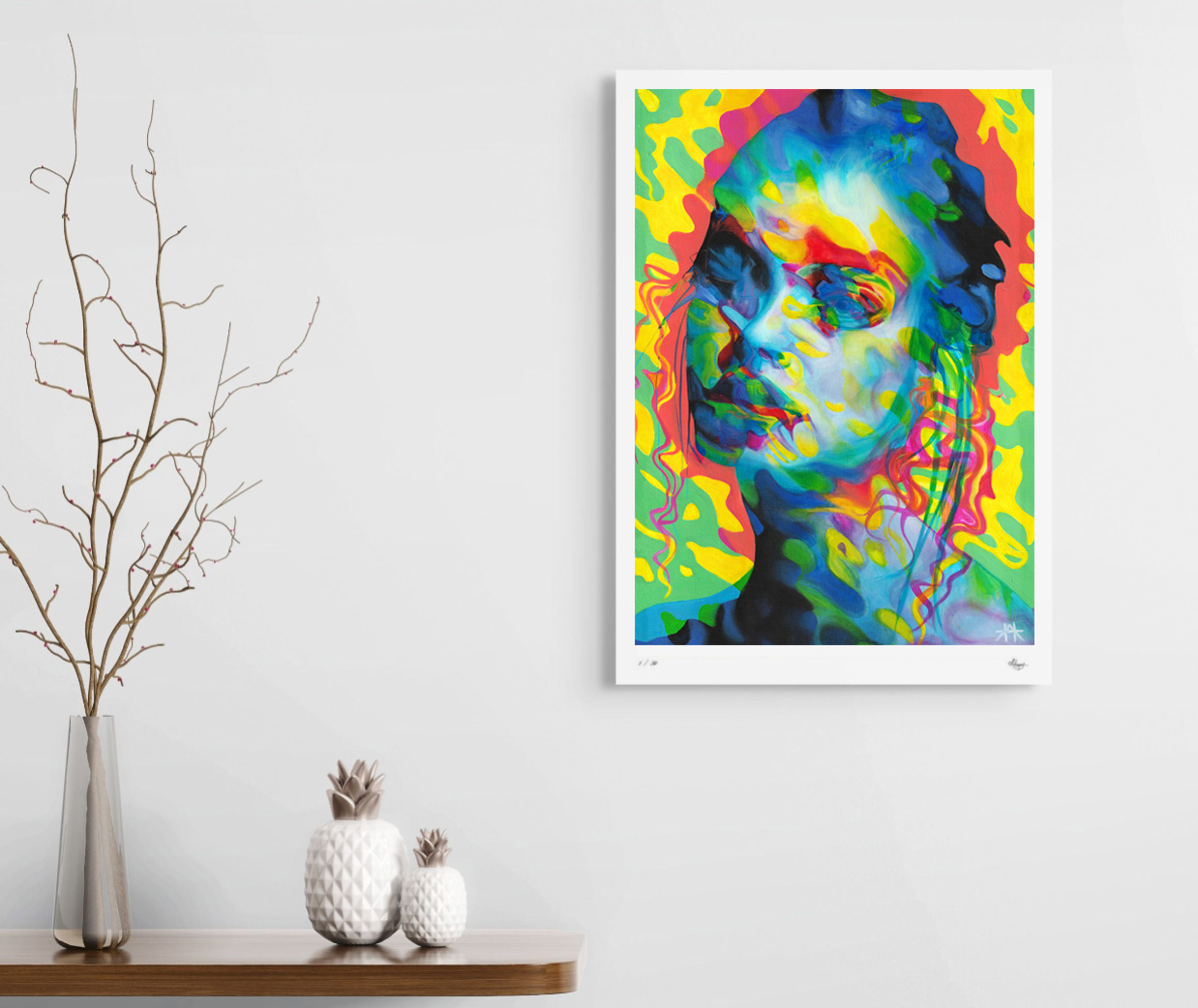 If you’d like to own a piece of exclusive art that moves and changes, maybe this bold, colourful print is the one for your walls.