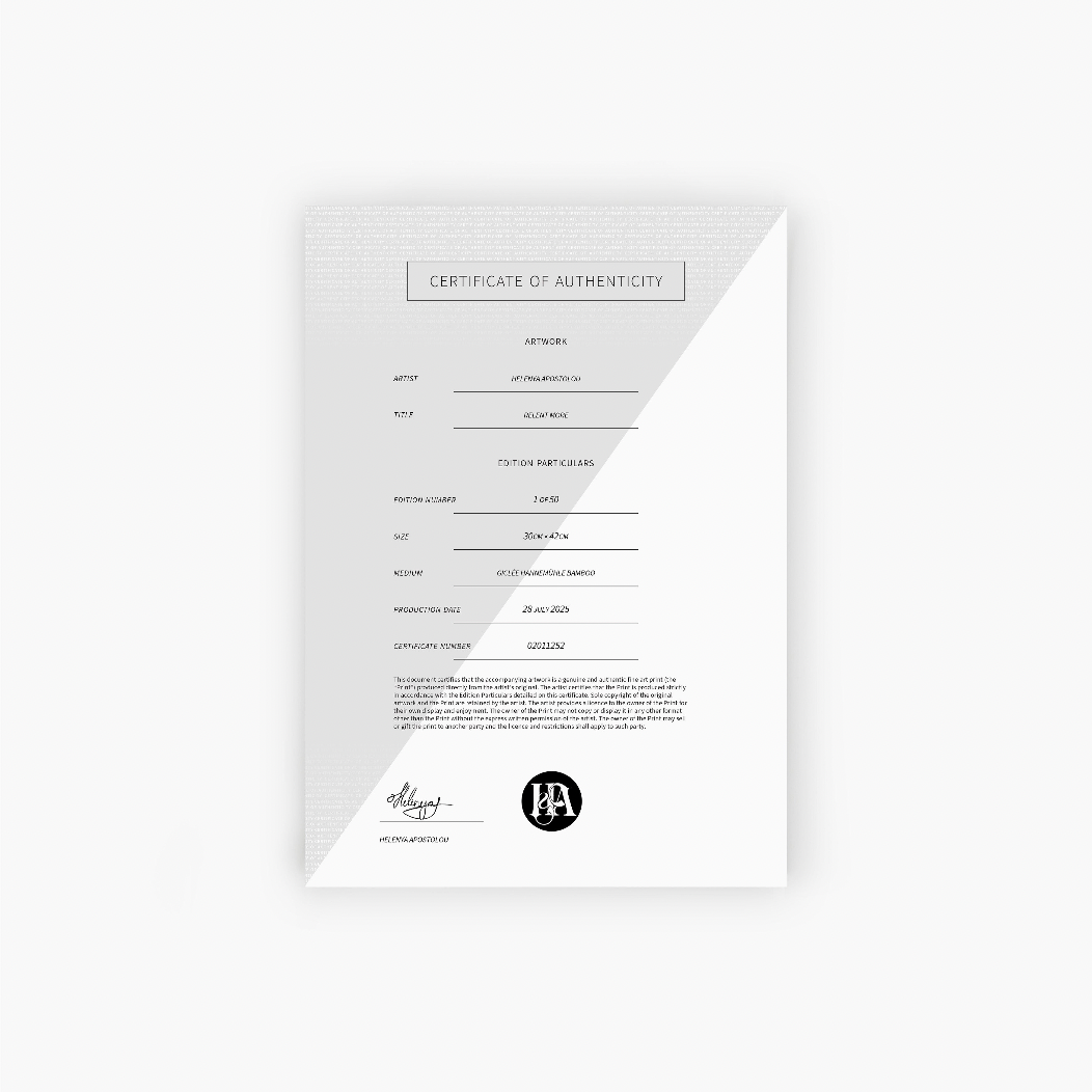 A1/ 24″ x 34″, fine art print, edition of 10 - Presented on acid-free, archival Bamboo Giclée paper from Hahnemühle