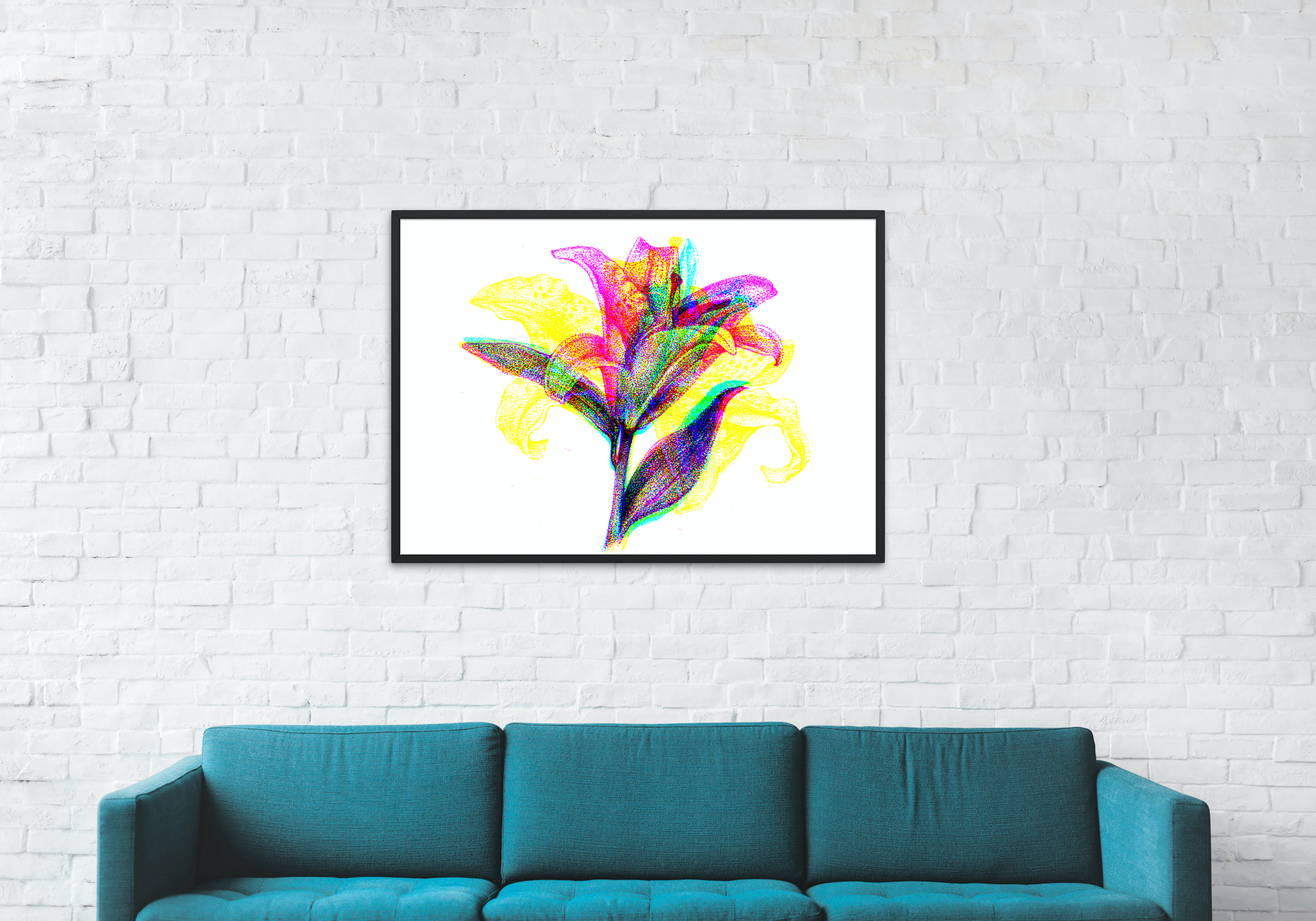 My light-reactive design ‘LILY’, in a series of digital prints and posters, as a captivating fusion of digital innovation and artistic expression. This piece blooms when exposed to RGB LED lights!