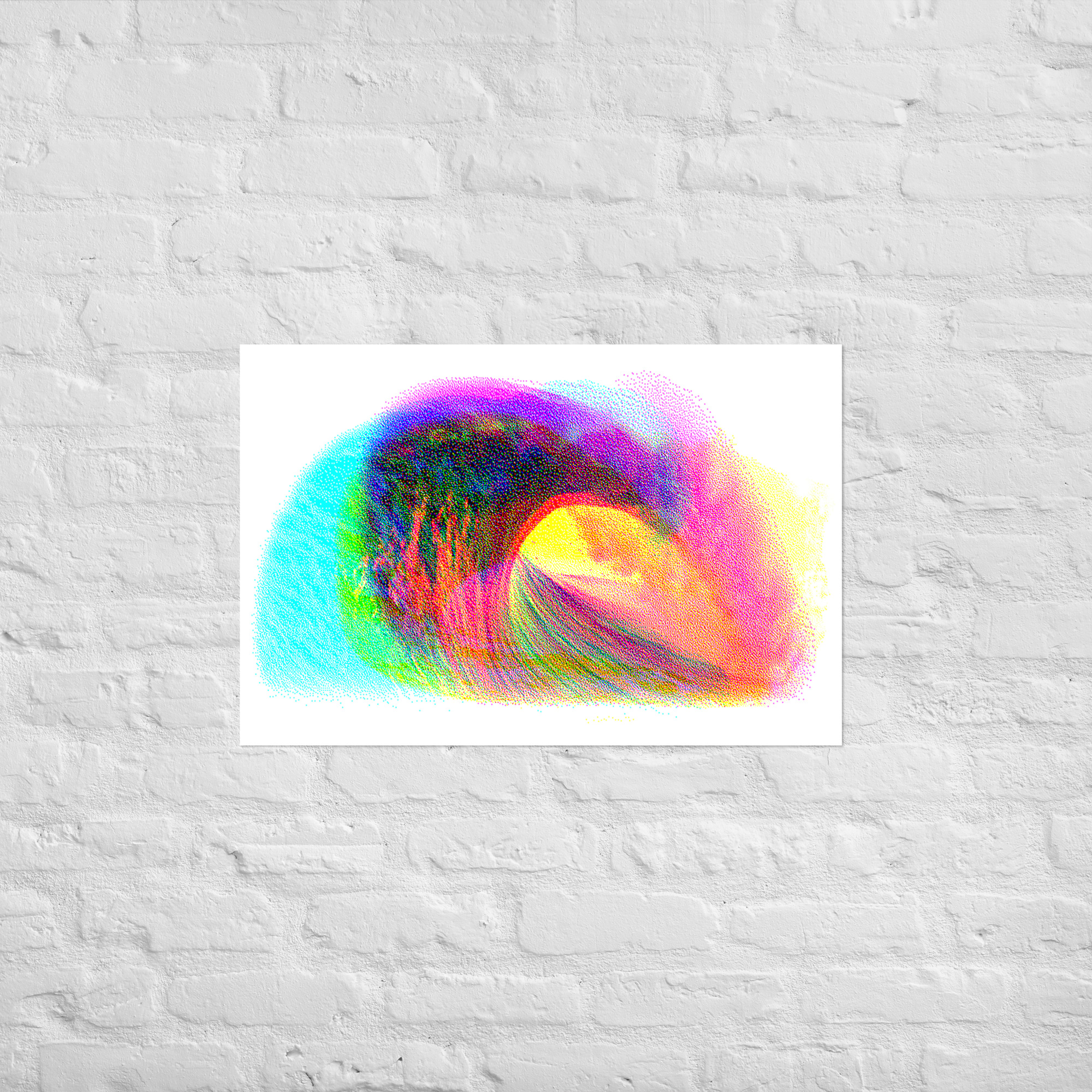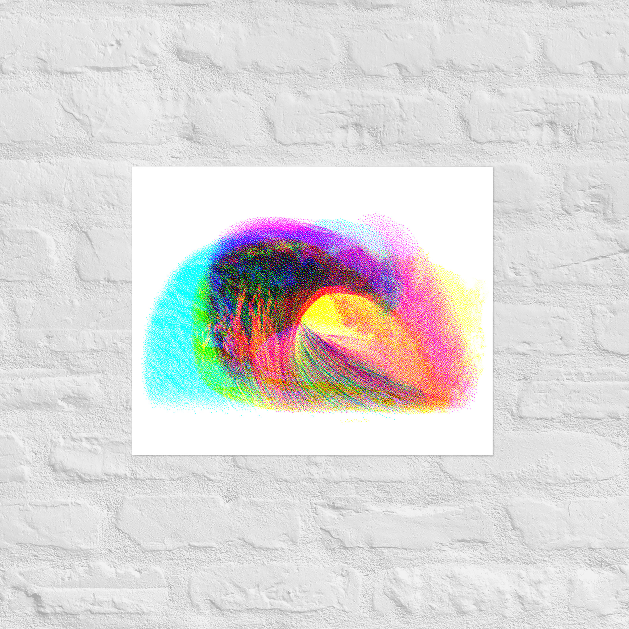 My light-reactive design ‘WAVE’, in a series of digital prints and posters, as a captivating fusion of digital innovation and artistic expression. This piece changes image when exposed to RGB LED lights!