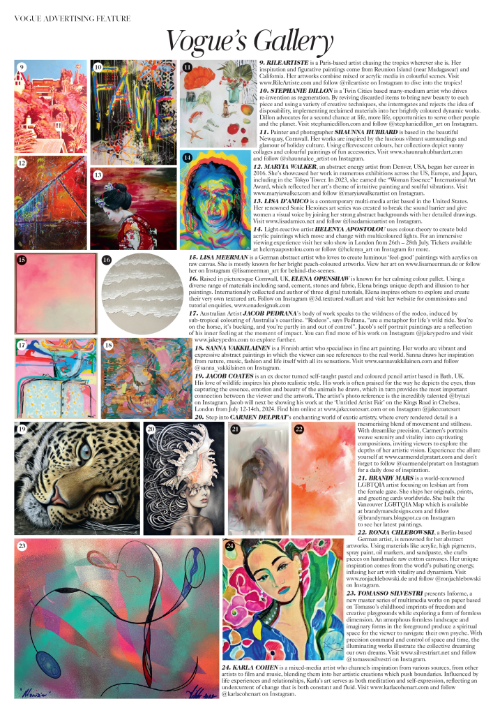 AS SEEN IN BRITISH VOGUE June, July & August Editions, 2024 Please leave this field emptySIGN UP NOW! Subscribe for exclusive discount codes, a FREE downloadable screen-saver, monthly updates and original artwork drops. I promise I don’t spam and you can unsubscribe at any time. Read my privacy policy for more information.. You're all signed up! Now just go and check your inbox or spam folder to confirm your subscription. Please leave this field empty FREE LOCK-SCREEN! Sign up for a FREE downloadable screen-saver, as well as exclusive discount codes, monthly updates and original artwork drops. I promise I don’t spam and you can unsubscribe at any time. Read my privacy policy for more information. You're all signed up! Now just go and check your inbox or spam folder to confirm your subscription.