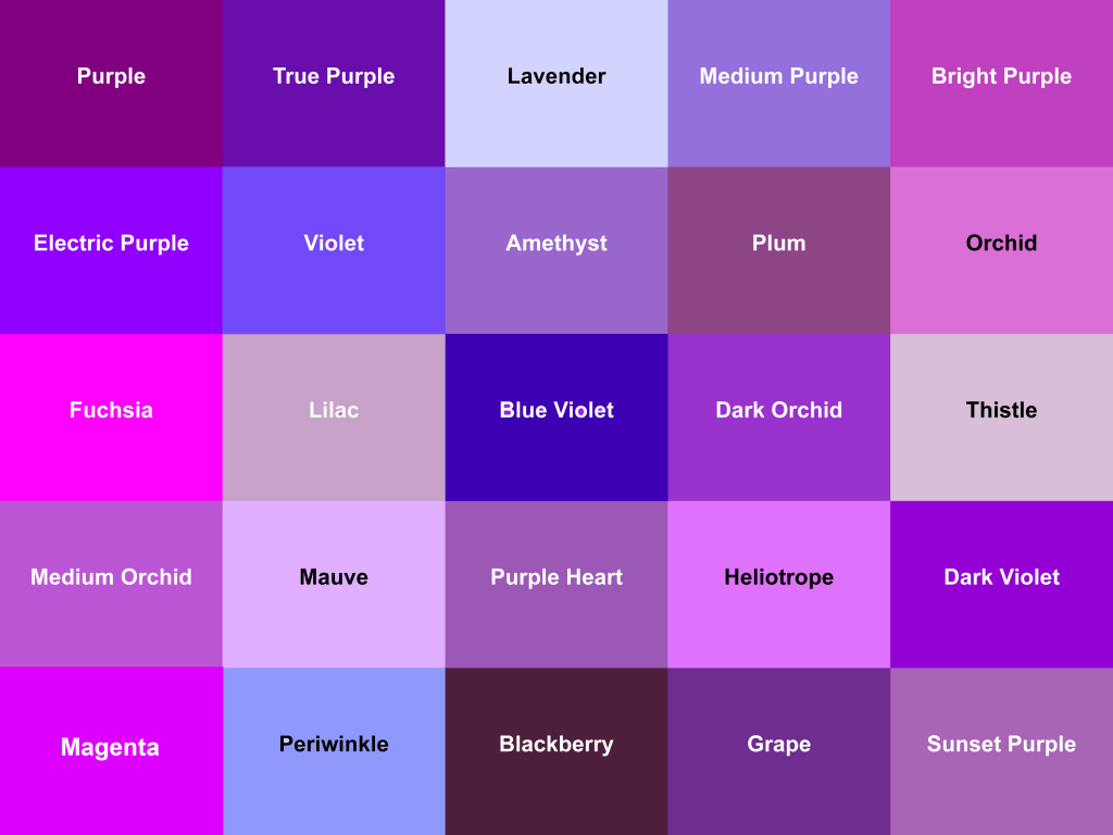 To illustrate this point, please take note of this image with a huge variety of shades that could all come under the umbrella of ‘purple’.